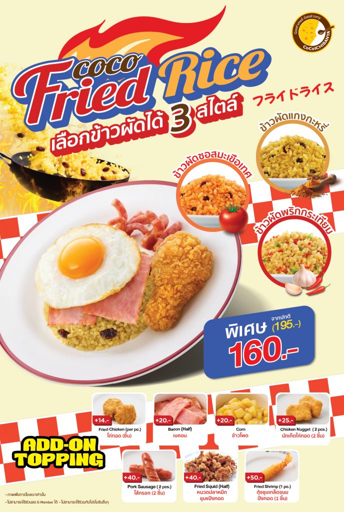 CoCo Fried Rice เมนูใหม่ ! อร่อยหลากหลาย เลือกได้ 3 สไตล์ ข้าวผัดแกงกะหรี่ ข้าวผัดพริกกระเทียม ข้าวผัดซอสมะเขือเทศ เพิ่มความอร่อยง่ายๆ ด้วยท็อปปิ้งโดนใจได้ตั้งแต่วันนี้ - 31 ม.ค 69